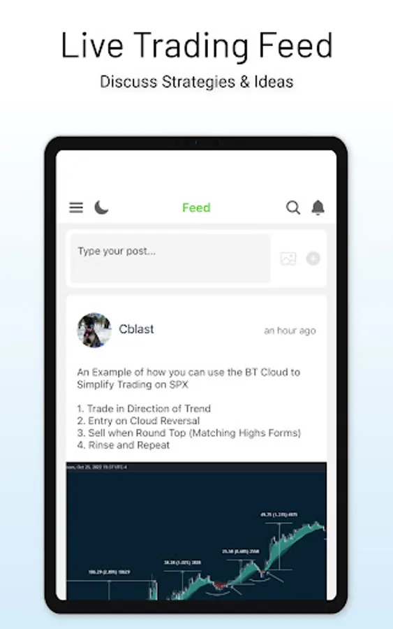 Discuss Strategies & ideas, receive instant push notifications from alerts, follow market breaking news and learn how to trade from top analysts in a collaborative learning environment. Are You Ready to Take your Trading to the Next Level?