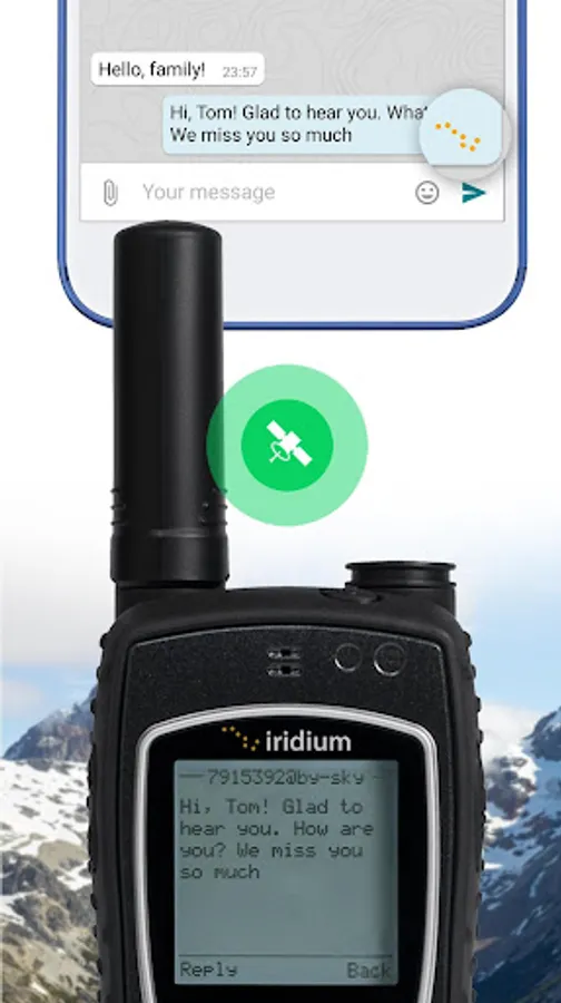 Bysky is an application for smartphones that allows you to send FREE text messages to various satellite phones, such as Iridium, RockSTAR, Inmarsat, Thuraya or Globalstar. Bysky uses your phone’s internet connection (4G/3G/2G/EDGE or Wi-Fi if available) to send messages and receive responses.