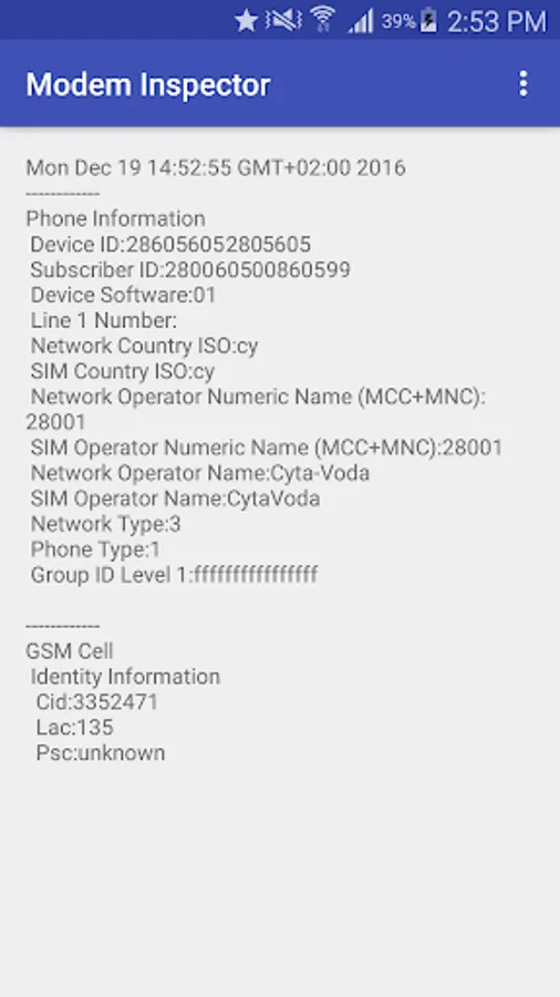 This application will show you various technical information that the modem of your device reads from the base-stations around you.