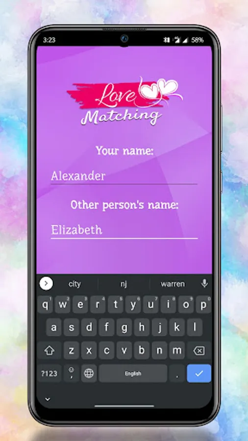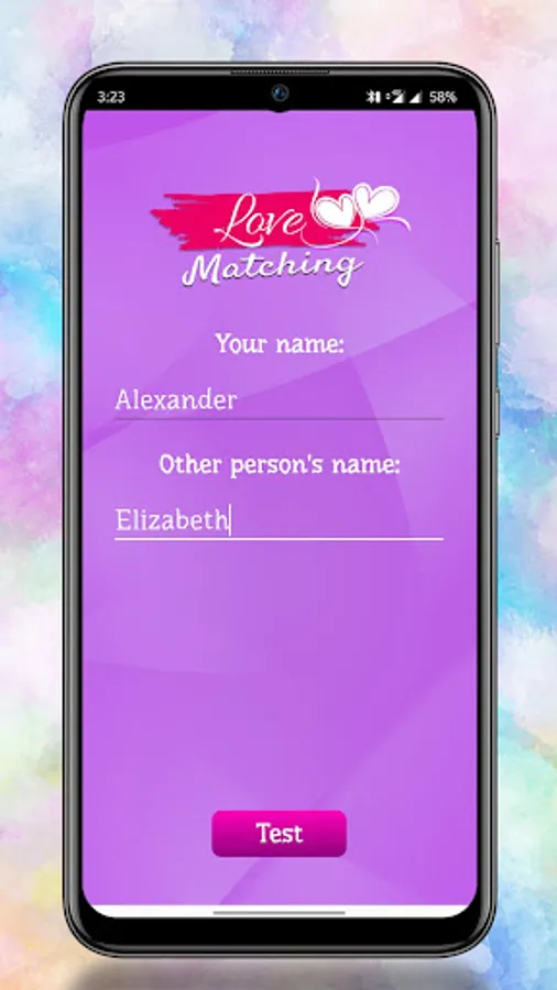 The love test app will compare your name with your partner's name and show you how many points you have scored.