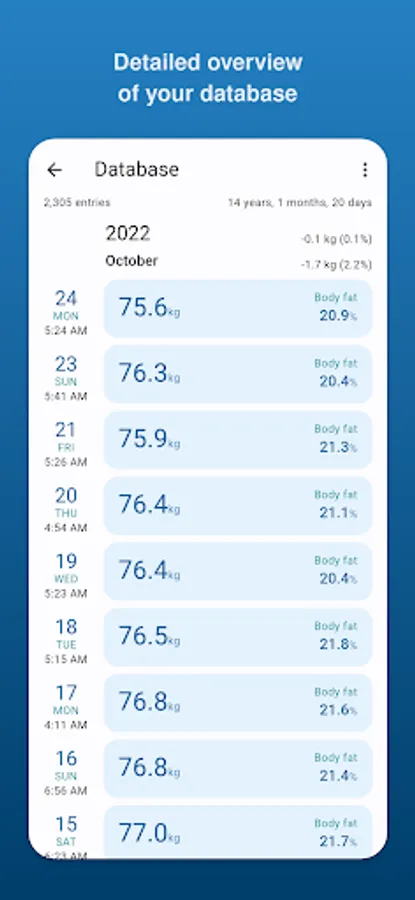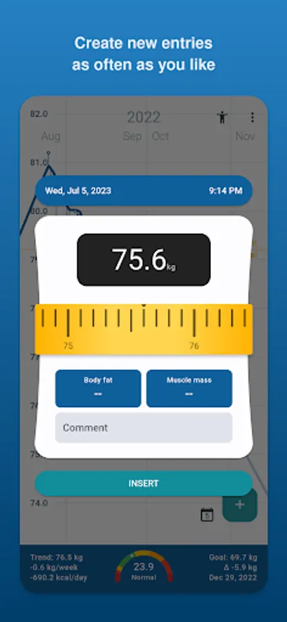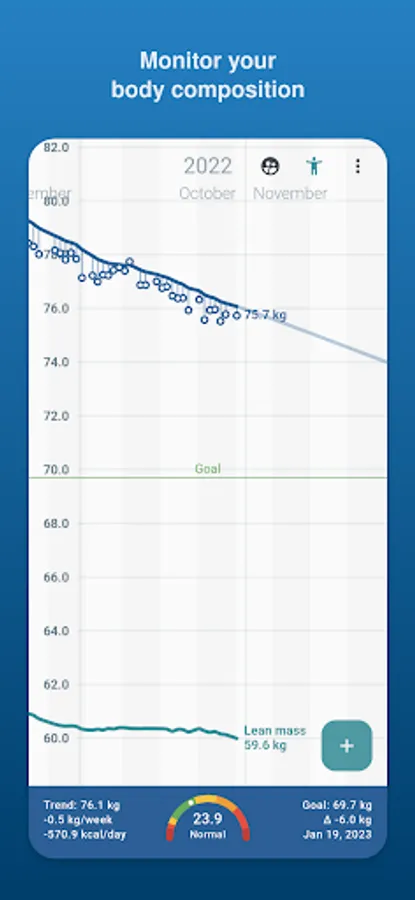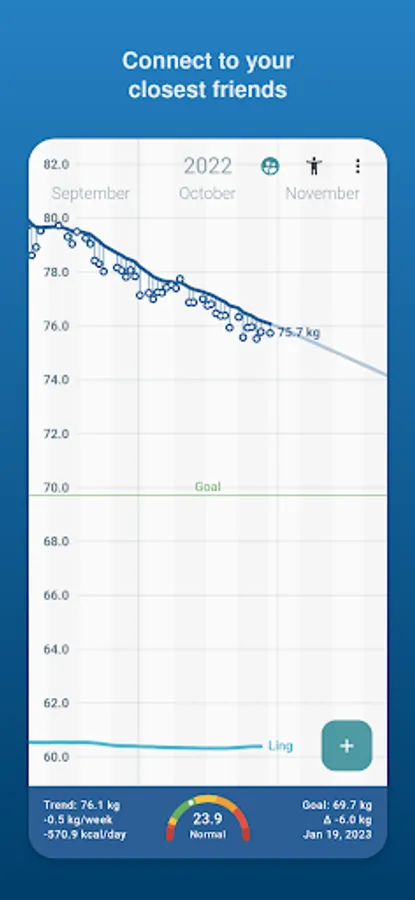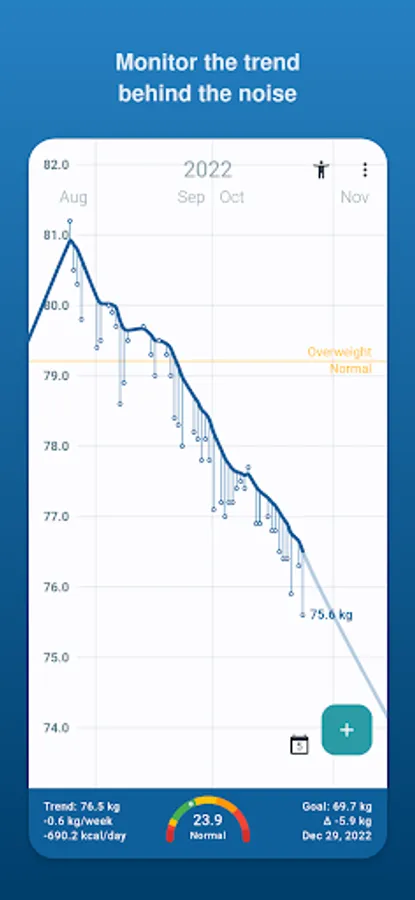 Libra tracks your daily weight changes and displays them in a beautiful interactive chart