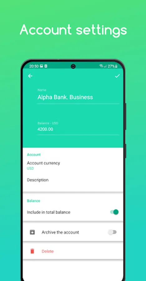 - Possibility of archiving the account. Archived invoices are not taken into account in calculations