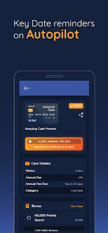A user-friendly organizing system to set personal savings and money goals, keep track of your specific cash back card bonuses earned, and monitor your credit score.