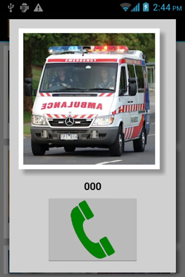 Android does not allow third-party apps such as this to initiate calls to emergency numbers (911, 000, etc). For these numbers, the default Android dialer will be displayed, and the call must be initiated by pressing the CALL button.