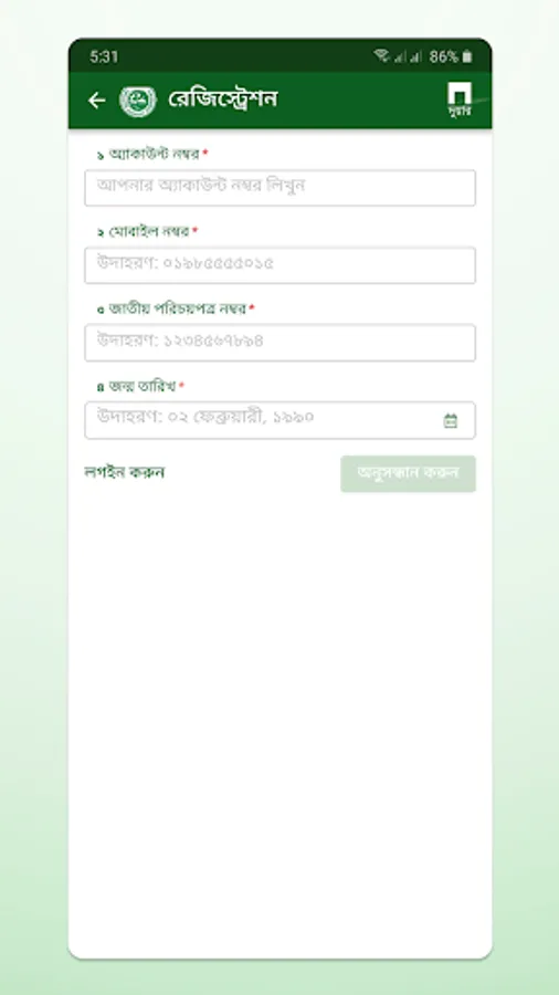 On downloading the application, during installation the customers will submit their profile and account information through the app for verification by Agrani Bank. Agrani Bank will notify the customer once the customer profile and account is verified. The customer will then visit any branch to sign the necessary documents which will result into the activation of mobile banking account for the customer