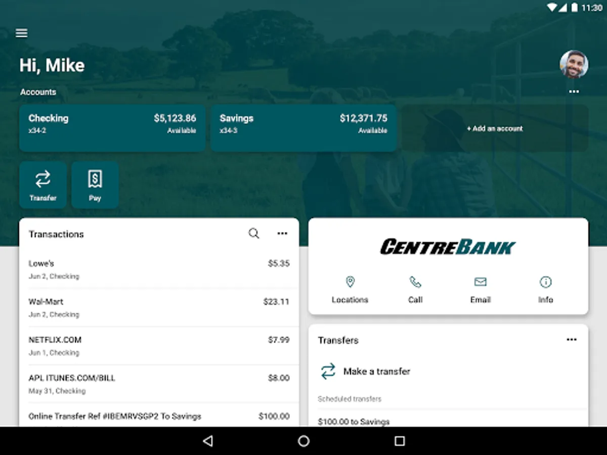To use the CentreBank app, you must be enrolled as a CentreBank Internet Banking user. If you currently use our Internet Banking, simply download the app, launch it, and login with the same Internet Banking credentials.