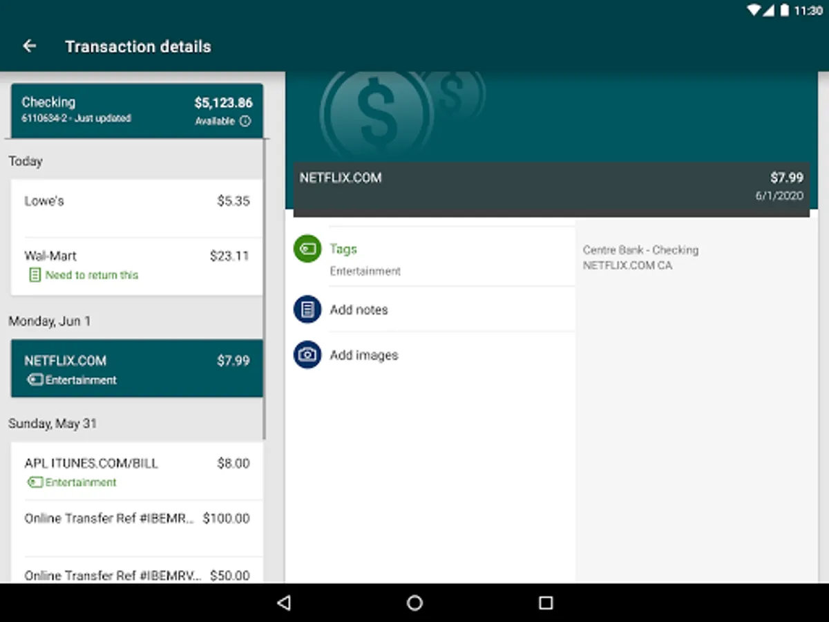 Keep your transactions organized by allowing you to add tags, notes and photos of receipts and checks.