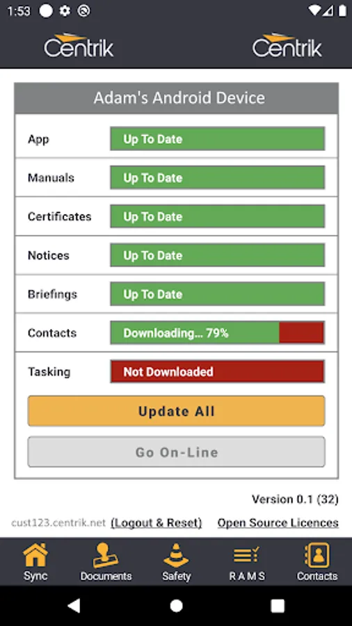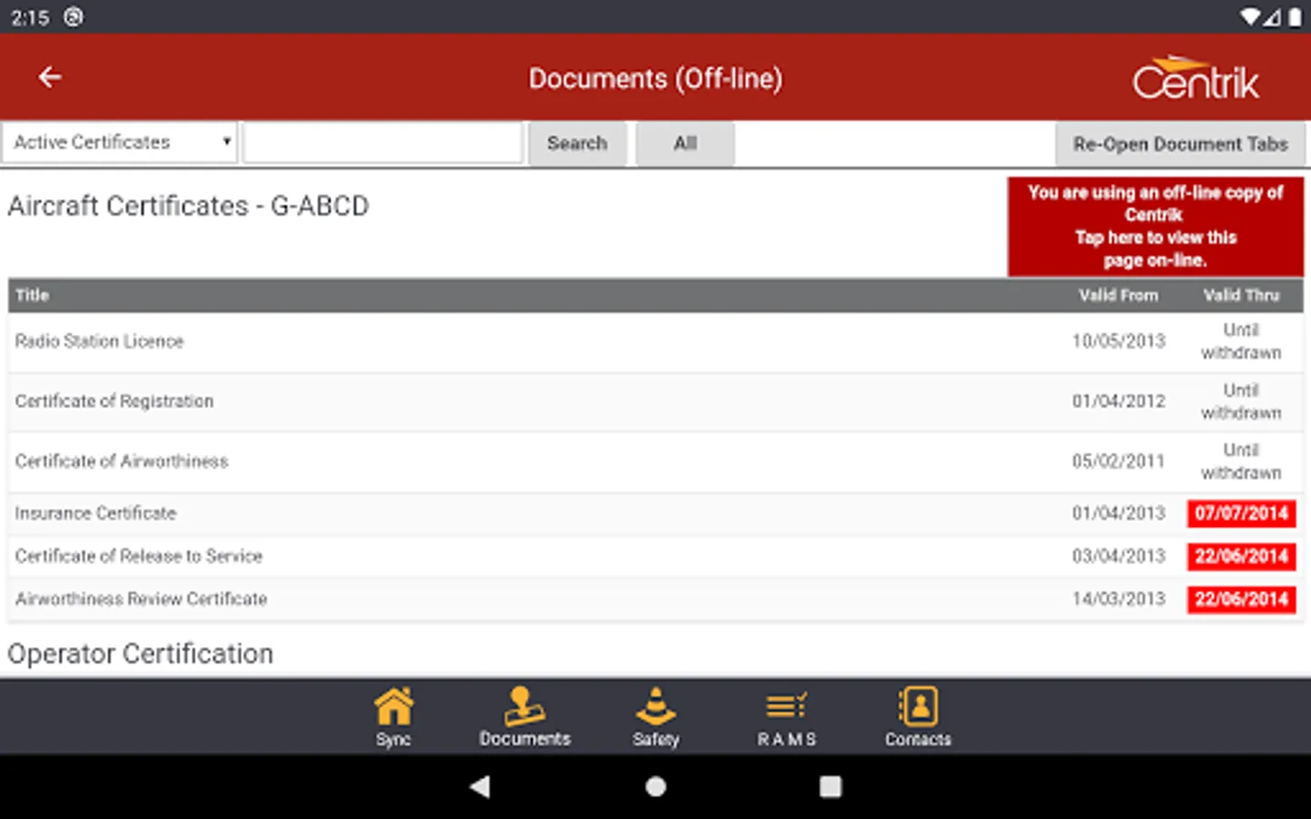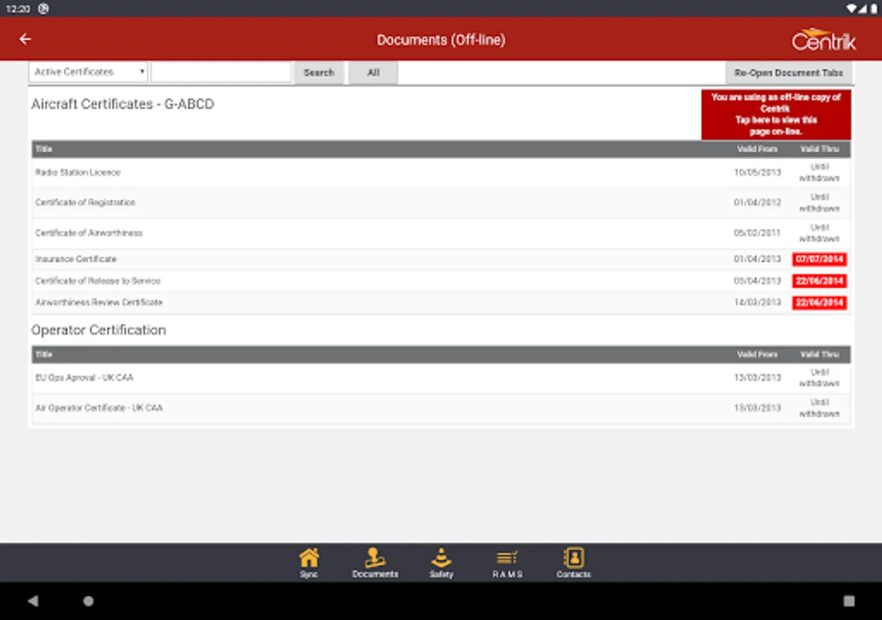 The Centrik App is the "Electronic Flight Bag" (EFB) for the Total AOC Centrik system. It allows Centrik users to carry documents off-line, fill in forms off-line, and synchronize the EFB contents when back on-line. It also provides a seamless interface to access Centrik from your Android device.