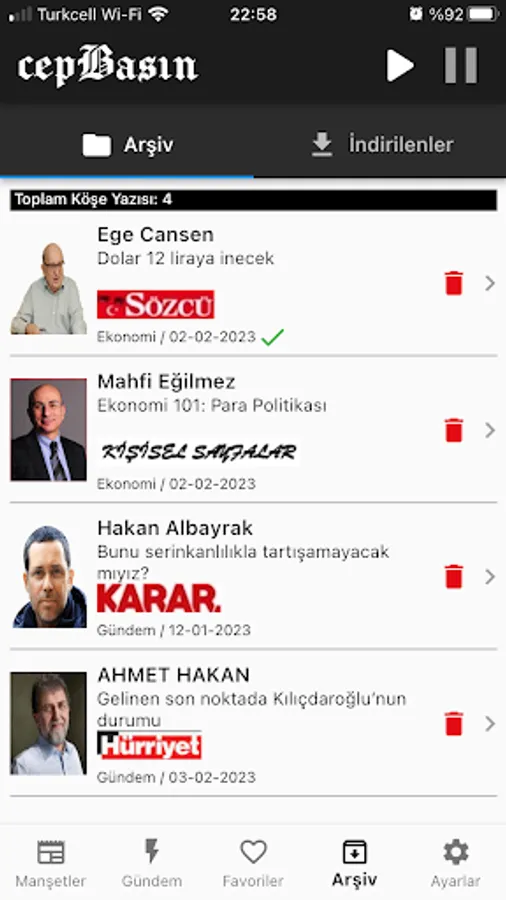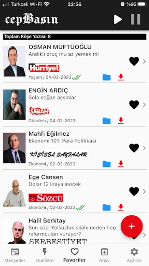 With the cepBasin mobile application, you can read the front pages of the newspapers, follow the columnists, create favorite lists, listen to the columns aloud, and share the columns. In addition, with advanced filtering and querying features, you can easily reach the columnist and columnist you want.