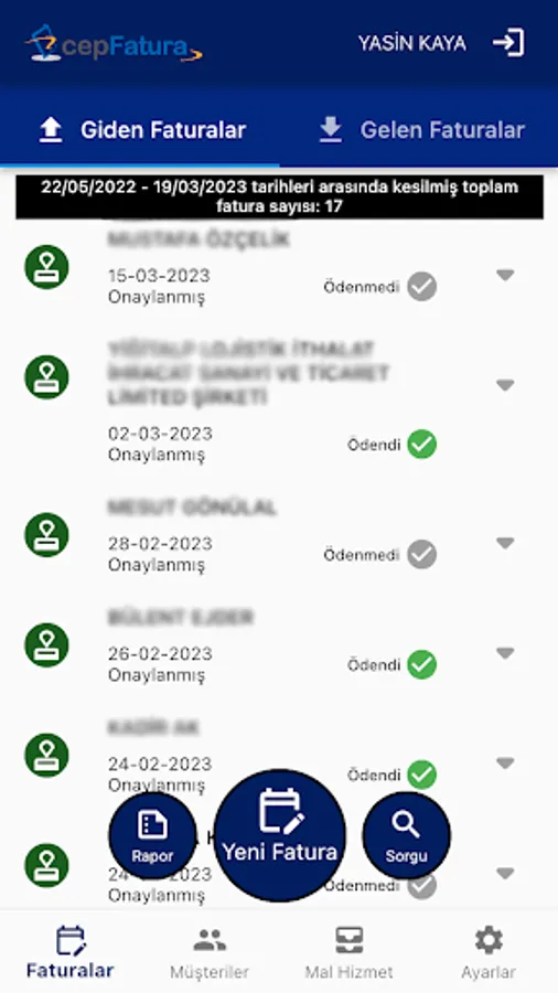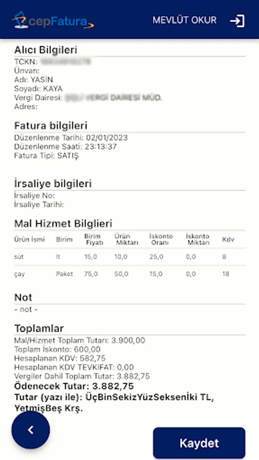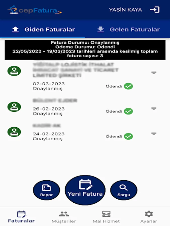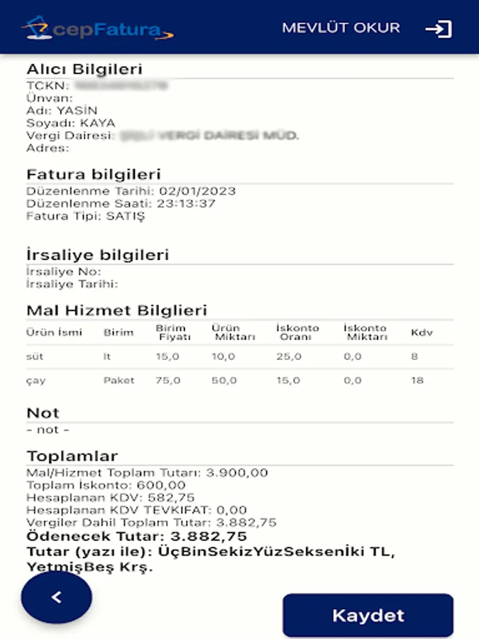 With the cepFatura mobile application, you can log in to the E-Archive Portal system of the Revenue Administration from your mobile devices, arrange your invoices and approve your invoices.