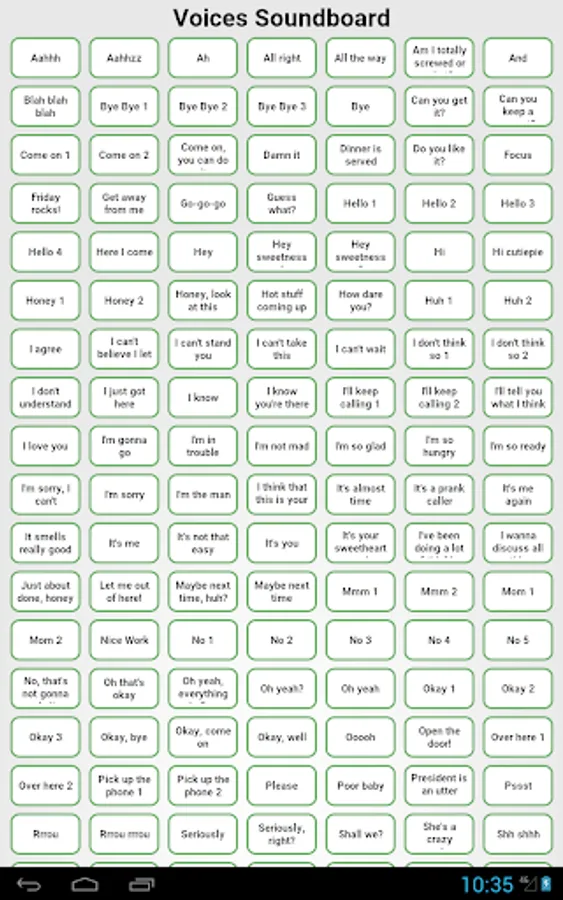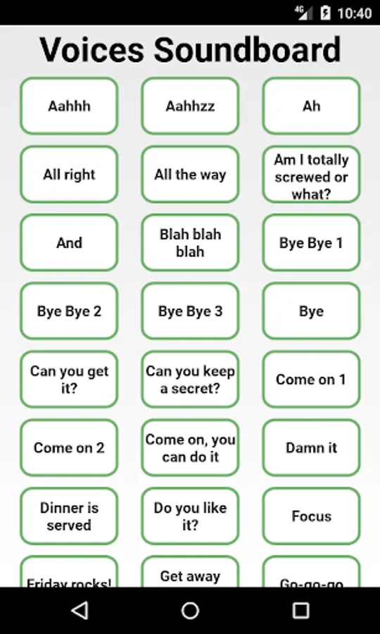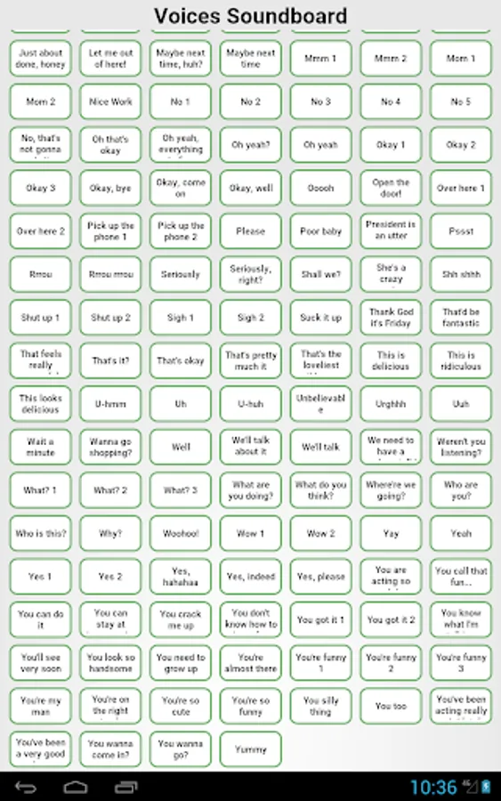 The sounds included in the Voices Soundboard include everything to express your joy, vent your frustration, announce your intentions or just goof around and be the coolest in the crowd.