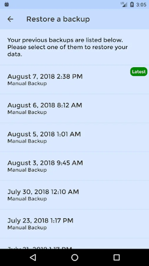 You can easily backup your data by tapping the "Backup" option from the settings menu. All backups created using the app will be placed in a folder called "Cigared" on your device's storage. You can easily move this folder to a new device and restore your data whenever you need to.