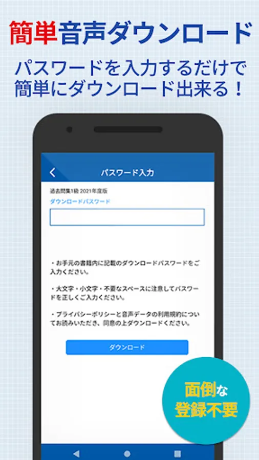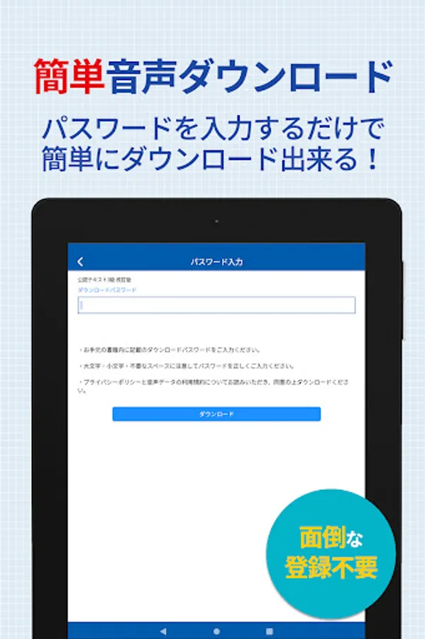 Simply select a book you have purchased and enter the password on the book to download the audio! (The required time varies depending on the communication environment and terminal specifications)