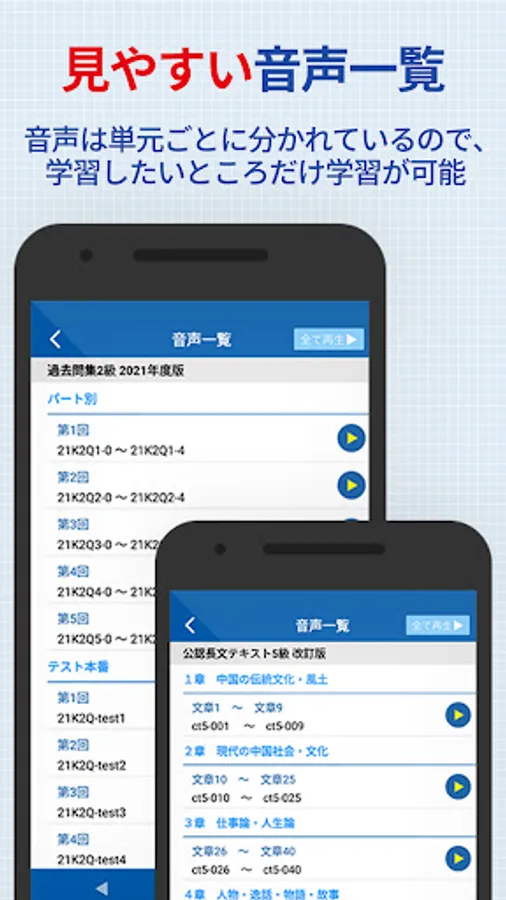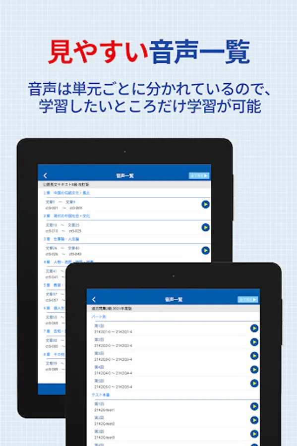 The audio is separated by unit, so you can quickly find the audio you want to learn!