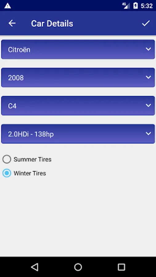 Ability to select a car model & type and find out what tire size it has. The app will also suggest the best replacement tires available on the market.