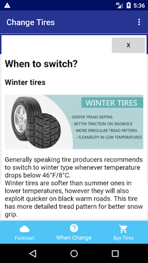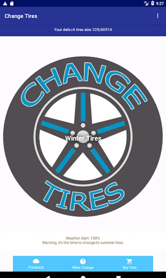 Help yourself and others with this reminder app which scans 14 days weather forecast and calculates based off our algorithm - percentage chances for changing tires on time.