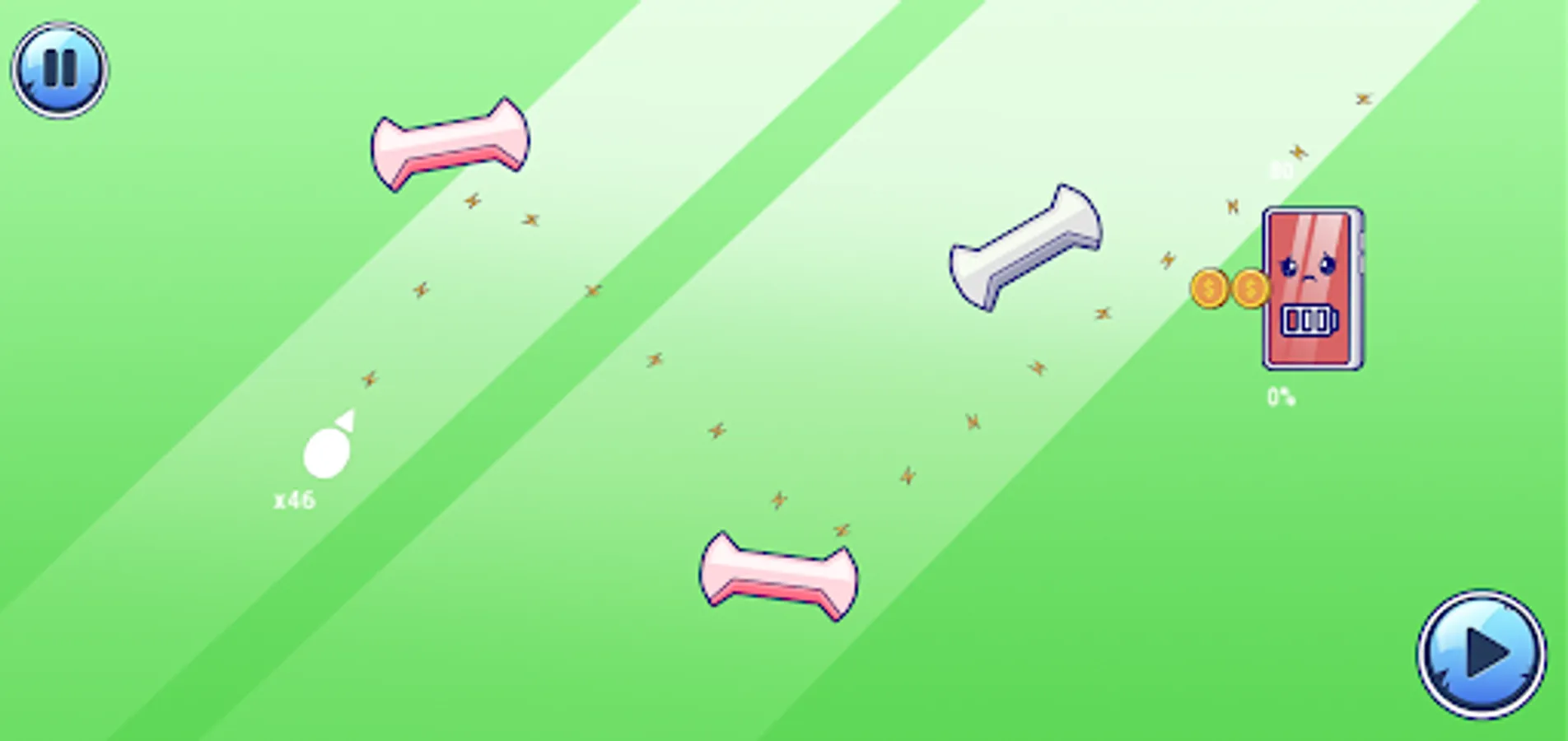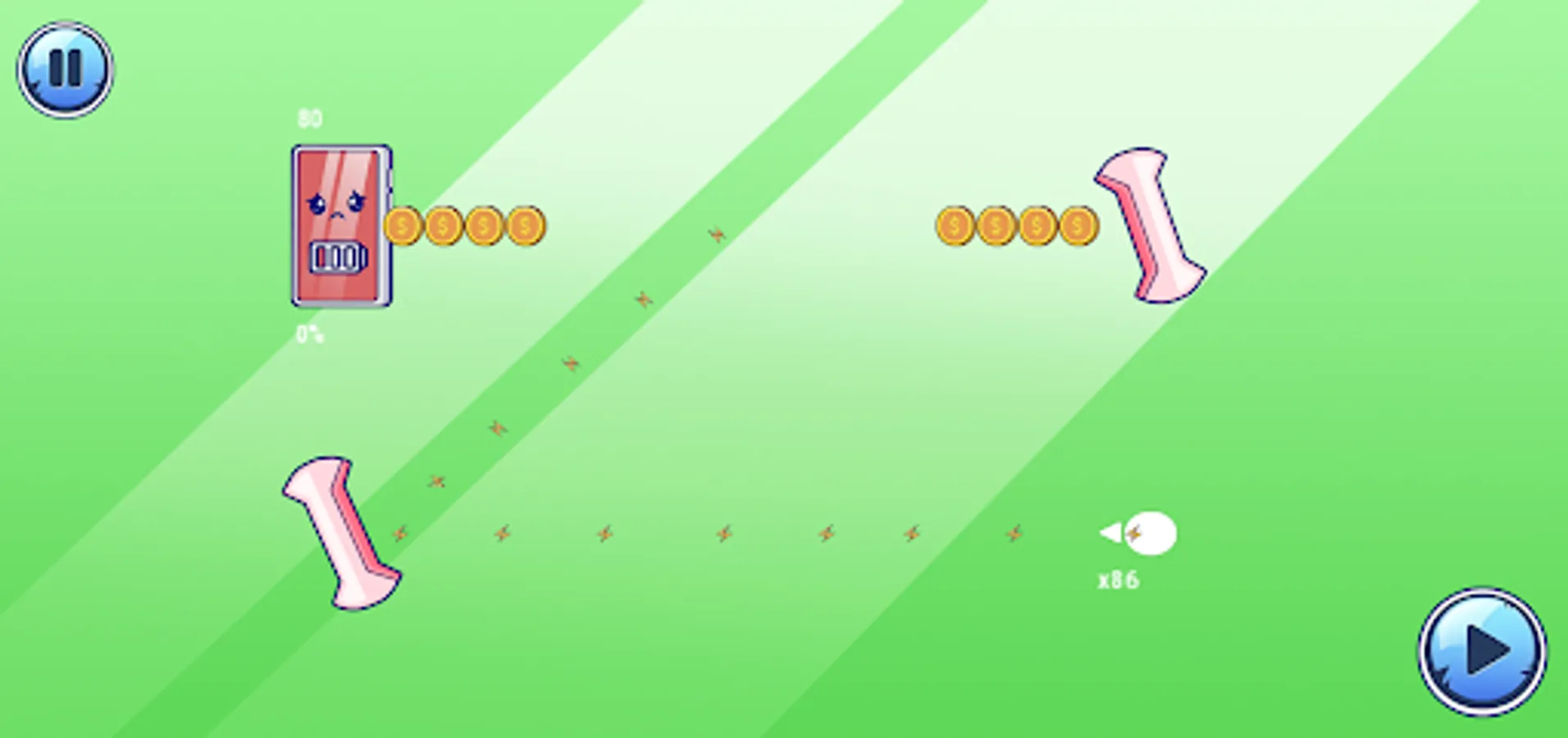 The player is given a limited number of coins that they can use to charge their phone. He must use them wisely in order to reach his goal and not be left without a charge.