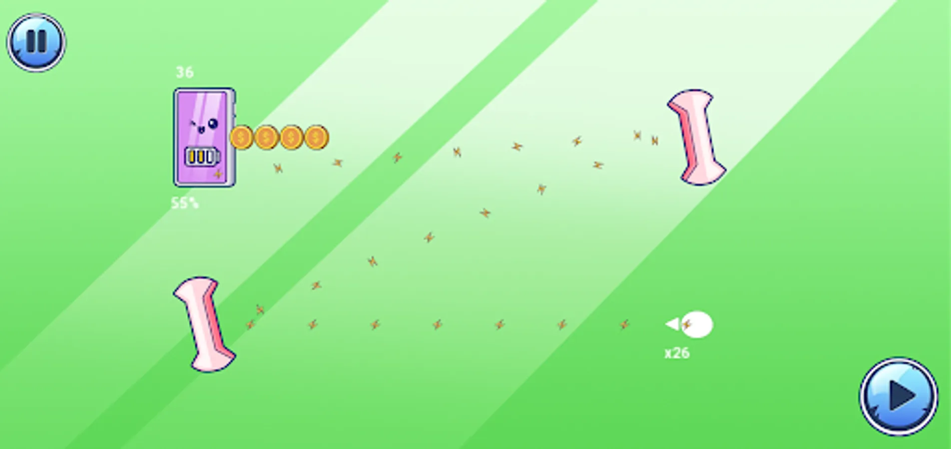 The gameplay of Charge Your Phone is based on the laws of physics and requires the player to be precise and strategic. Each level is a unique combination of obstacles and trajectories that the player must overcome in order to reach the goal.