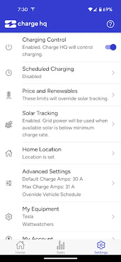 Charge HQ is a smart EV charging app for your home. It supports either a Tesla vehicle or a smart charger (OCPP compliant). For details see https://chargehq.net/