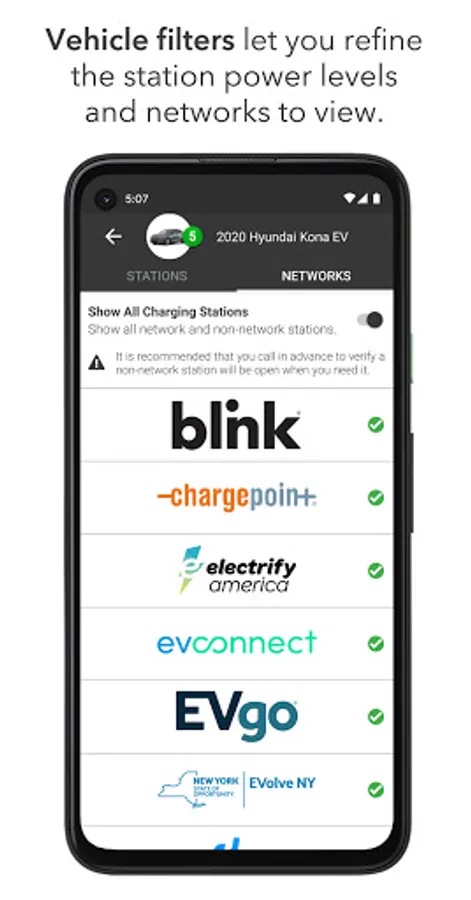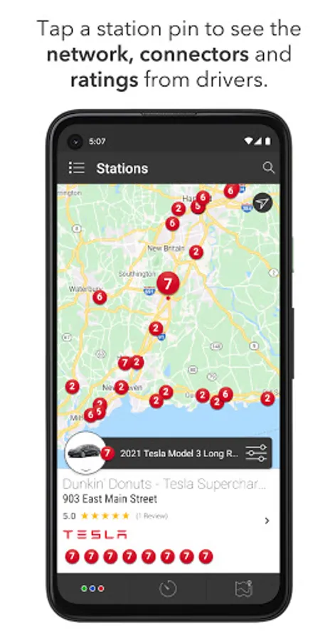 - Select "All Stations" on planned trips to view every charging option along your route