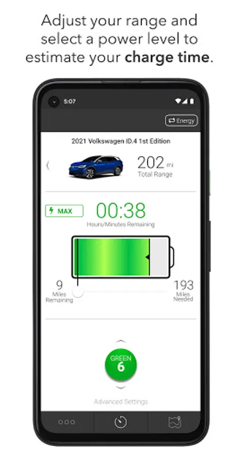 - Simply select the power level and your remaining range to estimate how much time your charge will take