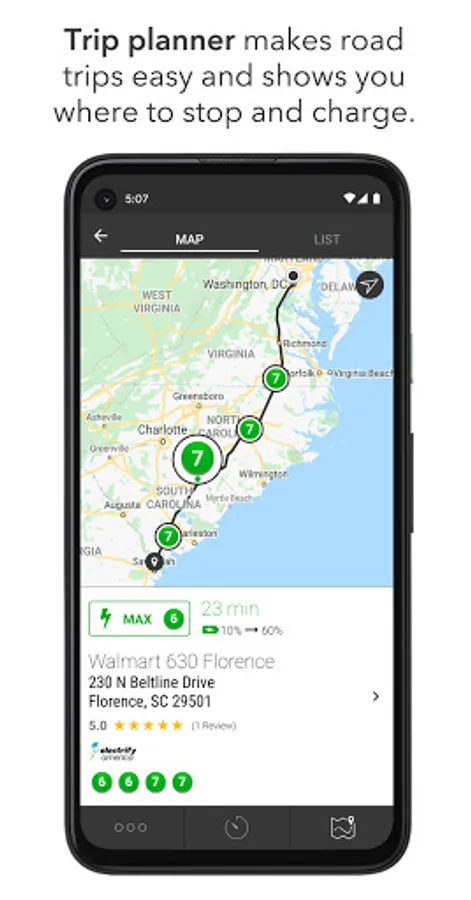- Charging times for every stop are estimated to help you plan your time better