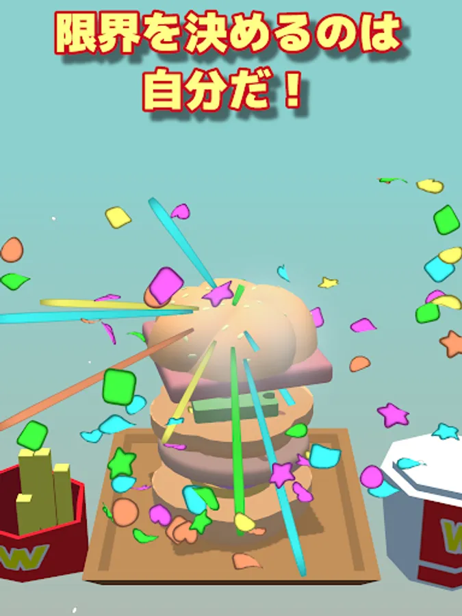 However, players have to be careful. The center of gravity must be taken into account when stacking ingredients. If the center of gravity loses its balance, the hamburger will collapse. Players are required to stack burgers as high as possible while maintaining balance.