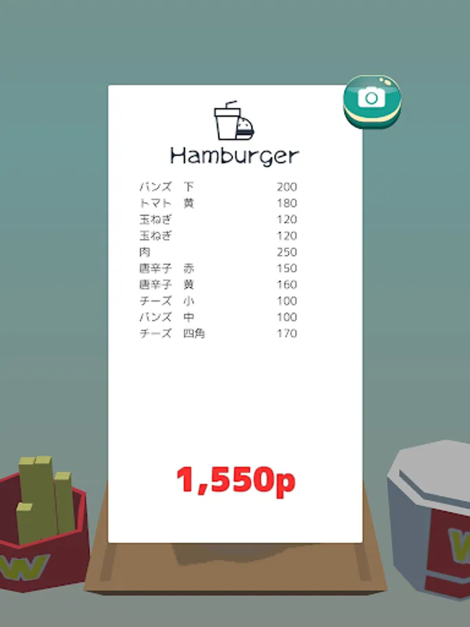 The player first places the buns that will be the bottom of the hamburger. Then add ingredients one by one. There are various kinds of ingredients such as lettuce, tomato, cheese, patty, pickles, and onion.