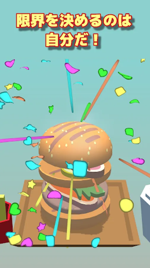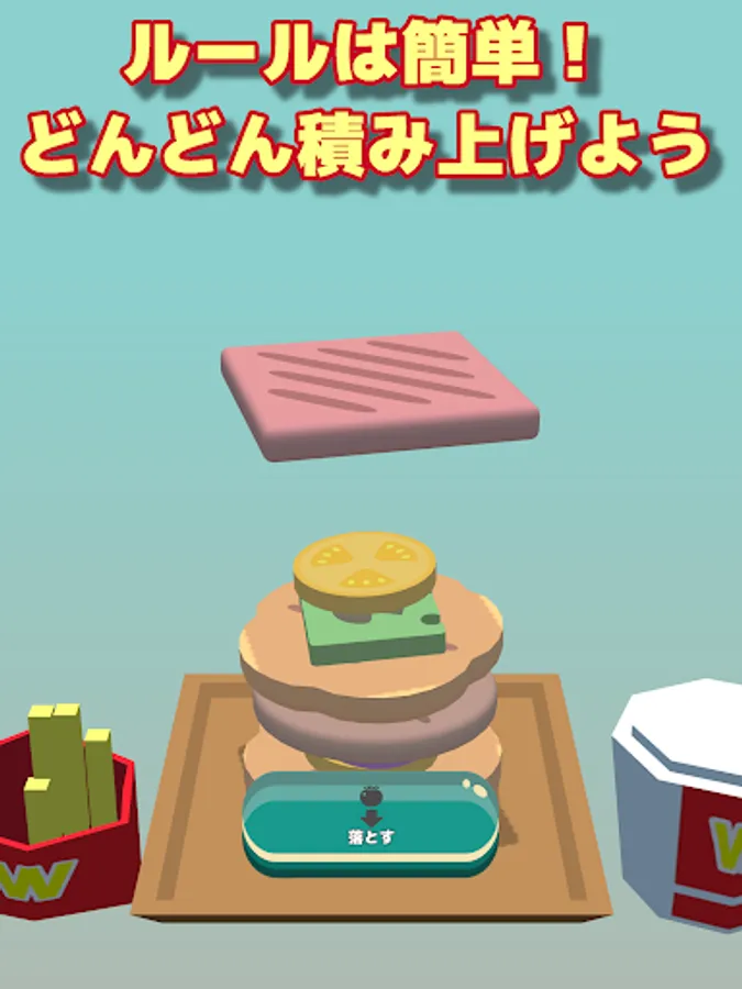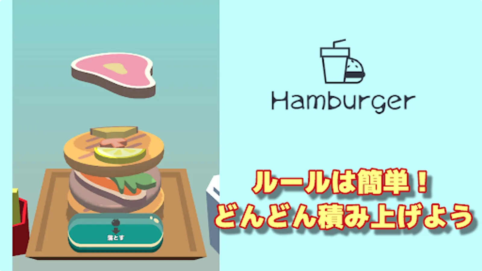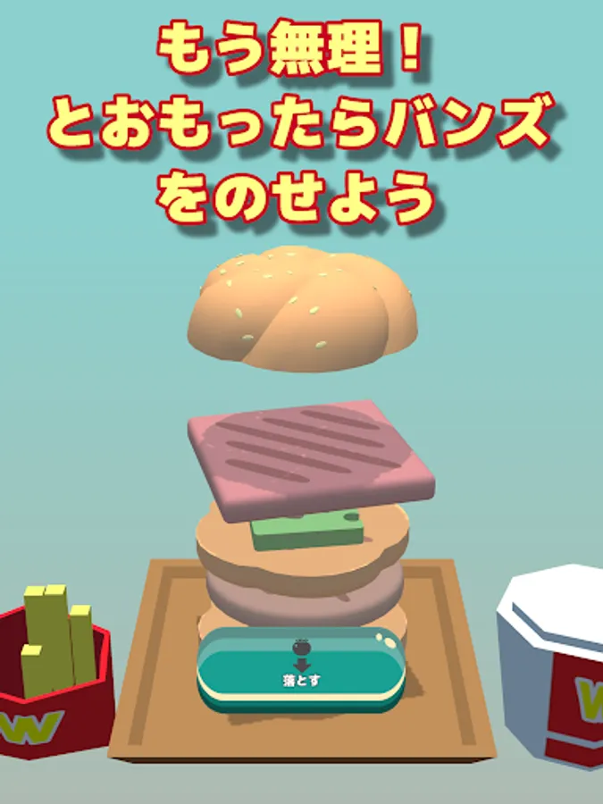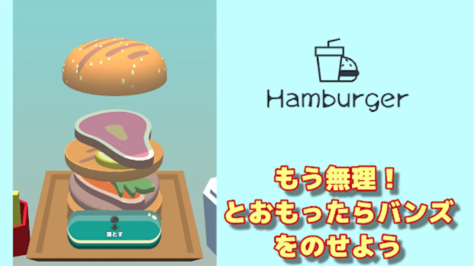 This balance game is a game of stacking hamburger ingredients. The goal of the player is to pile up the hamburger ingredients as high as possible before the hamburger collapses, and finally place the buns on top.