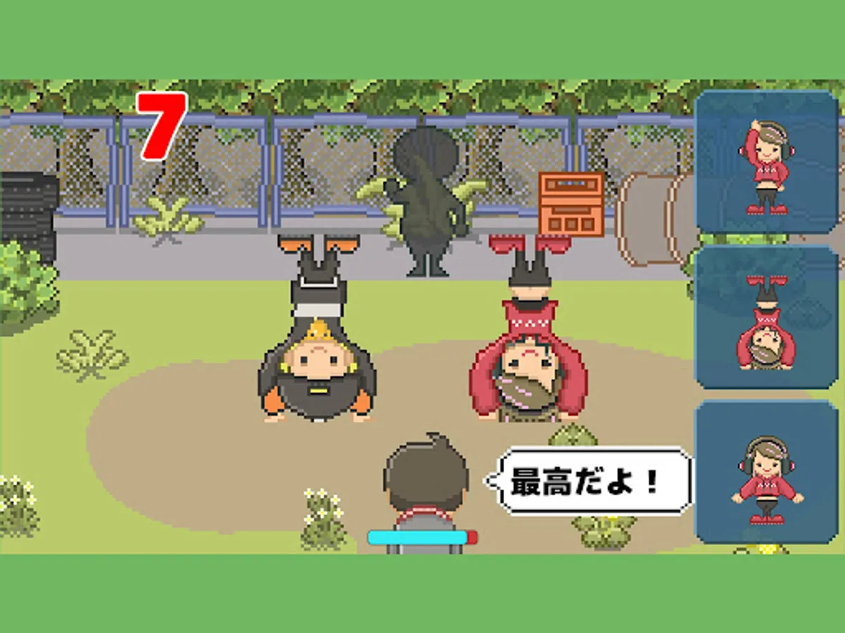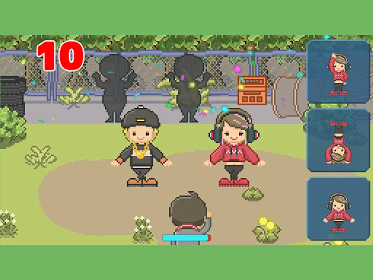 When the opponent decides the pose according to the rhythm, tap the panel of the same pose.