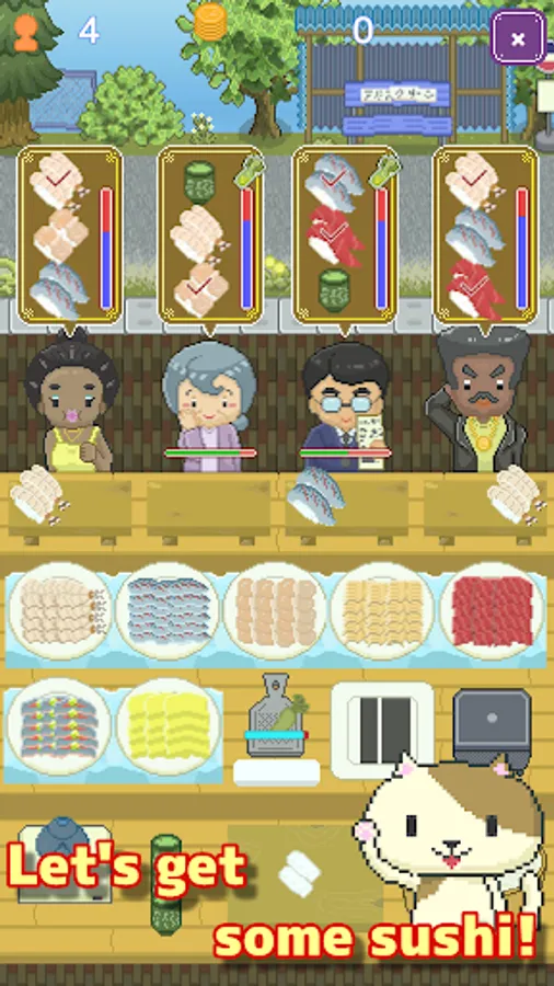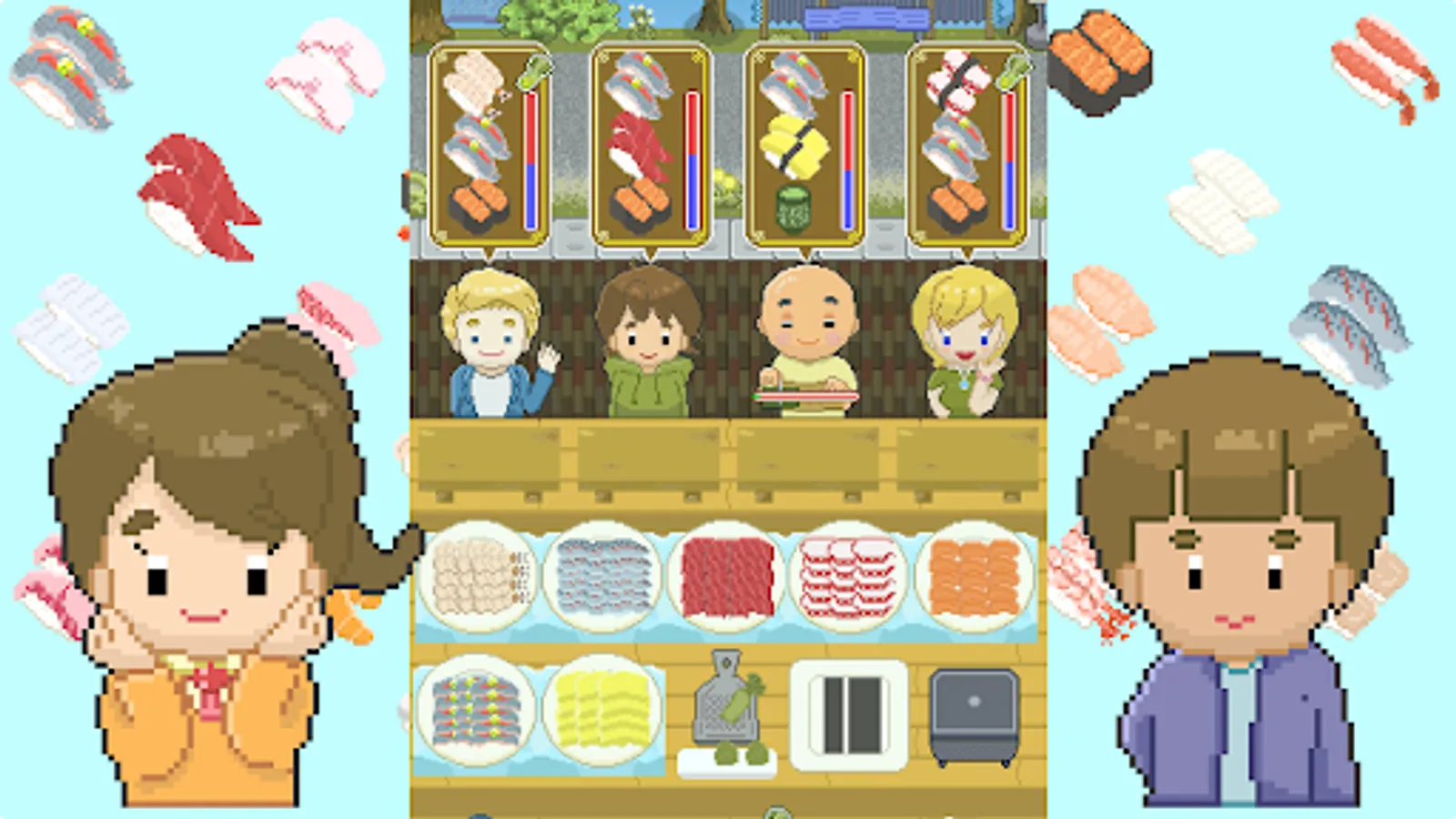 -Tap and swipe to serve the fish and rice according to the customer's order, such as tuna, salmon roe, or egg.