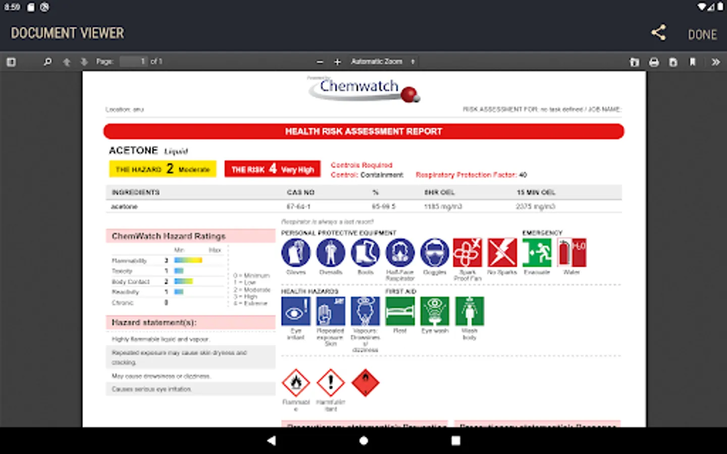 View Chemwatch Gold Safety Data Sheets (SDS)