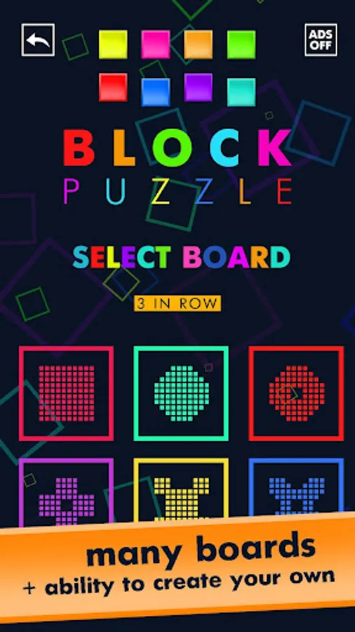 The game puzzlematch BlockPuzzle have unique mode allowing you to select game type, choose block types and create your own boards for game.