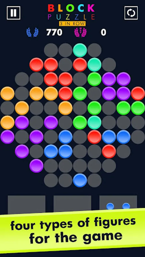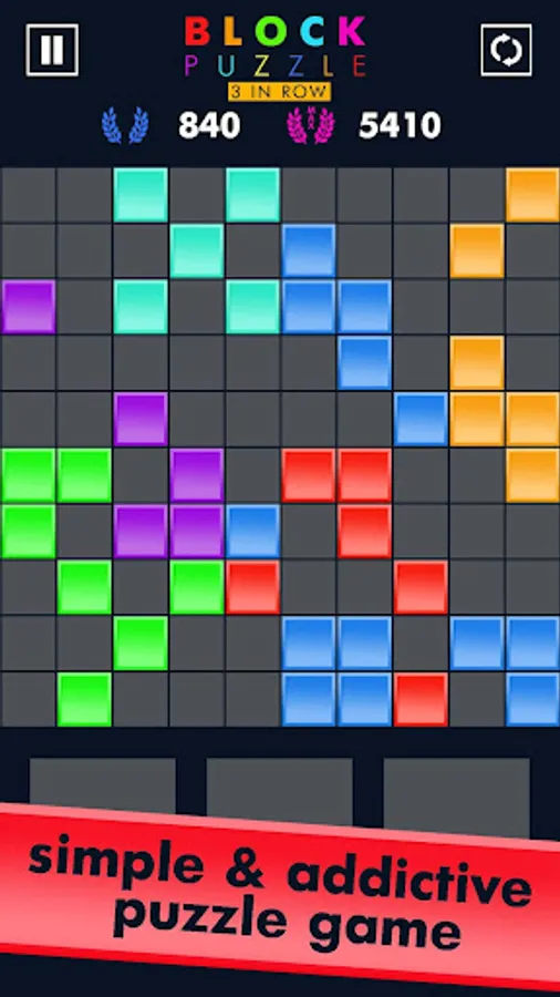 🏆 Three in a row - Match 3 Game (three and more blocks of one color collected in a row are destroyed);