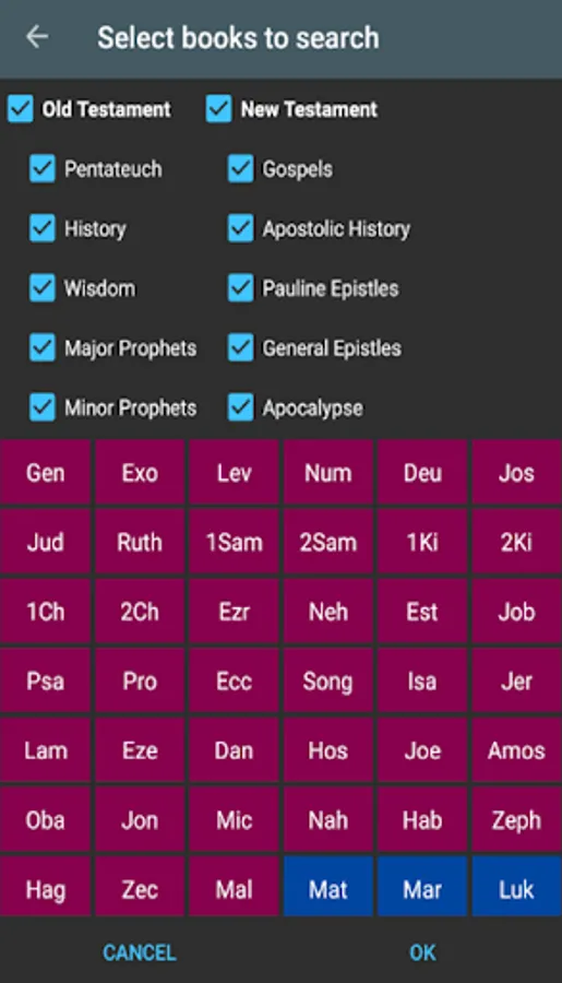 - Search by keyword and in the old testament and new testament.