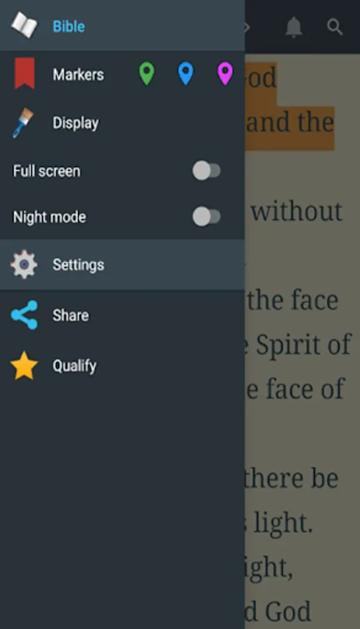 - Possibility to change the text color, background, number of verses.