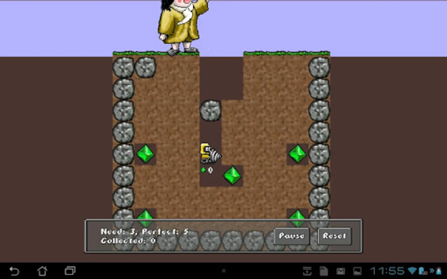 Puzzle game where you command your robot miners to dig for and retrieve gems without getting crushed by falling rocks.