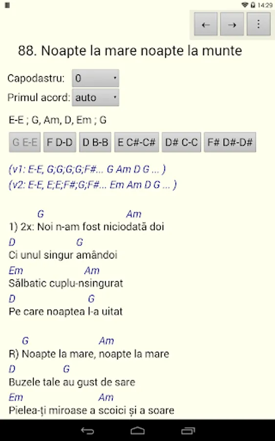 It also includes arrangements for guitar, which can be displayed by activating an option.