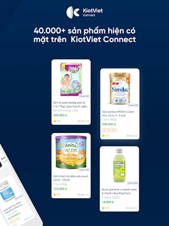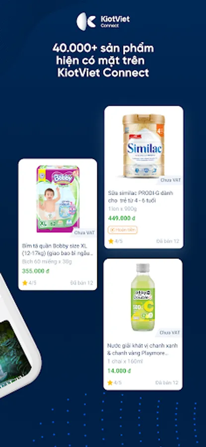 - Wide range of products with 40,000+ products currently available on KiotViet Connect