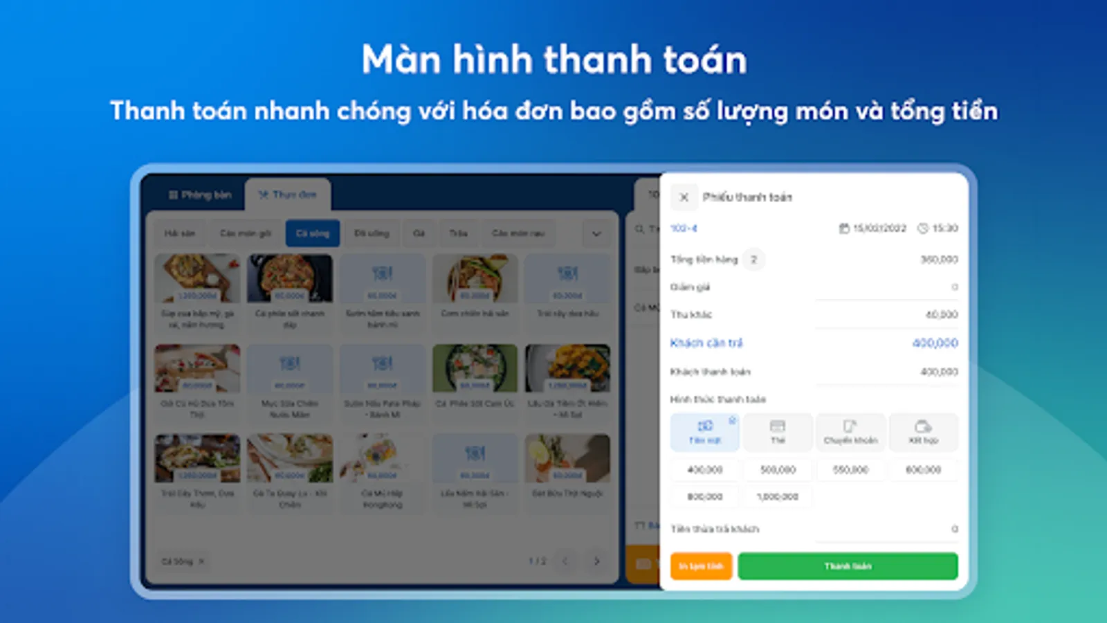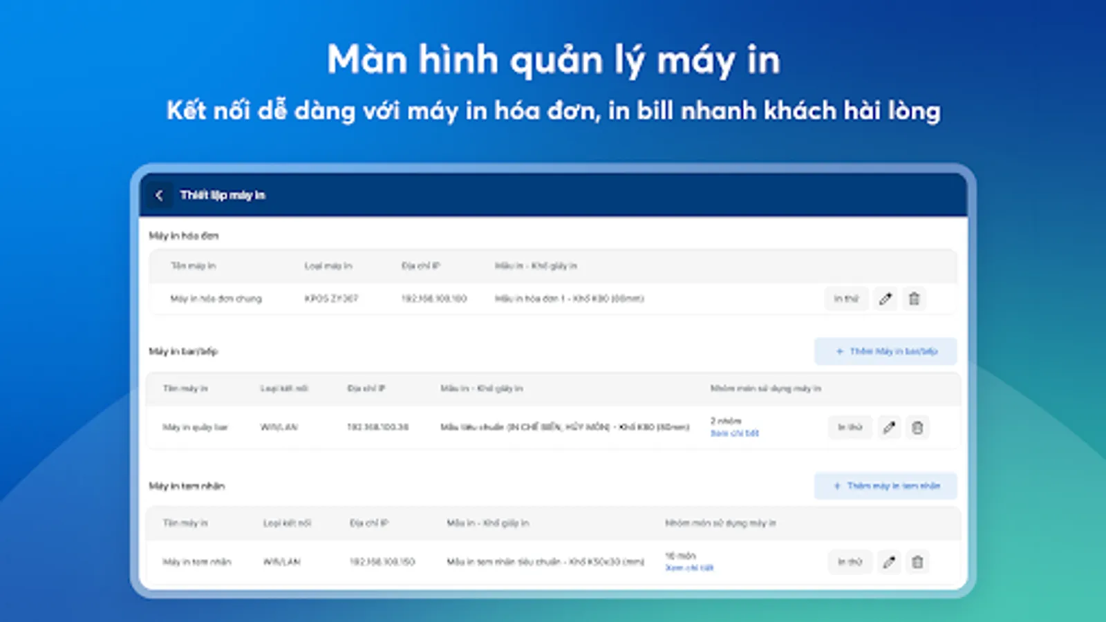 Easy connection with receipt printer, printing bill quickly in less than 1 second. Increase the professionalism and credibility of your shop.