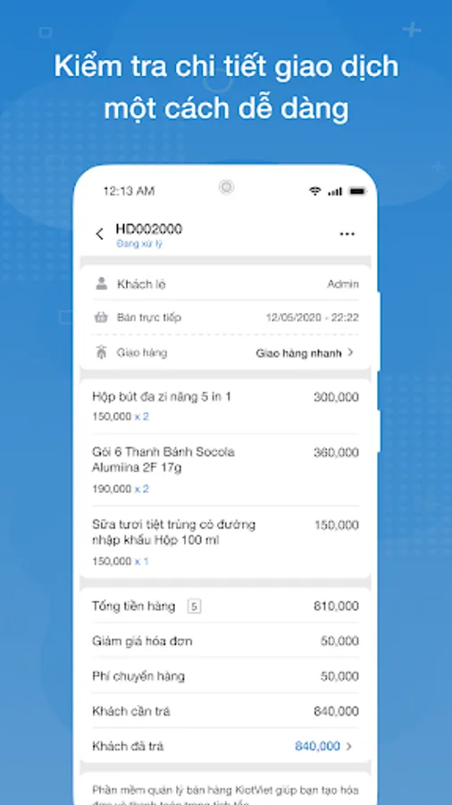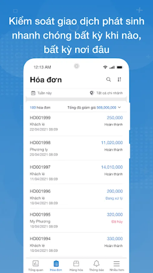 Giúp bạn nắm bắt chính xác, đầy đủ tình trạng giao dịch của từng đơn hàng, tại từng chi nhánh theo thời gian thực (cập nhật ngay khi giao dịch diễn ra). Giảm thiểu các thất thoát do nhầm lẫn, gian lận.