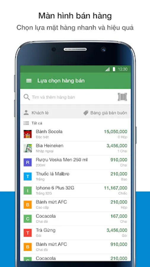 Với công nghệ tiên tiến biến camera điện thoại thành máy quét mã vạch, tìm kiếm sản phẩm cần bán ngay lập tức. Bạn với chiếc điện thoại nhỏ gọn trên tay có thể di chuyển tới mọi vị trí trong cửa hàng, lấy hàng, tư vấn và bán cho khách một cách nhanh chóng.