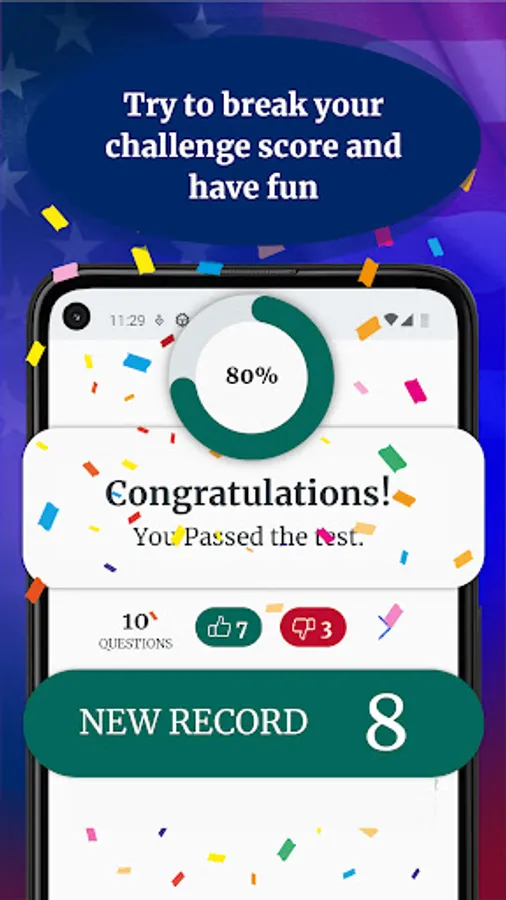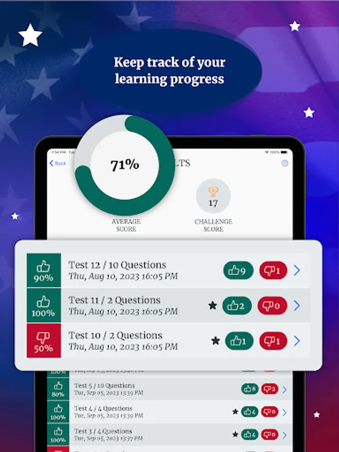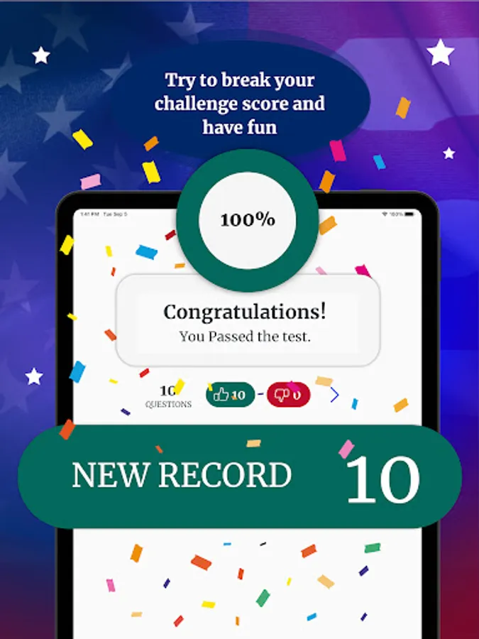 During the oral exam, a USCIS officer will ask up to 10 questions from the original 100 in the app. To pass the US Citizenship Test, achieve a score of at least 60%. English proficiency will also be assessed through writing and reading an English sentence.