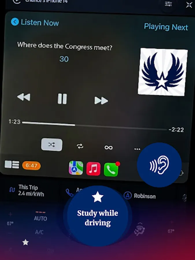 Transition your US Citizenship dream into reality with Citizen Now. Customized to navigate you towards success, this all-inclusive guide changes your study method into an interactive learning adventure. Citizen Now's US Civics Test Study Tool incorporates interactive civics, reading, writing tests, an audio player and more. Prepare for the US Citizenship Test 2023 during commutes with Android Auto, transforming every moment into a productive one.