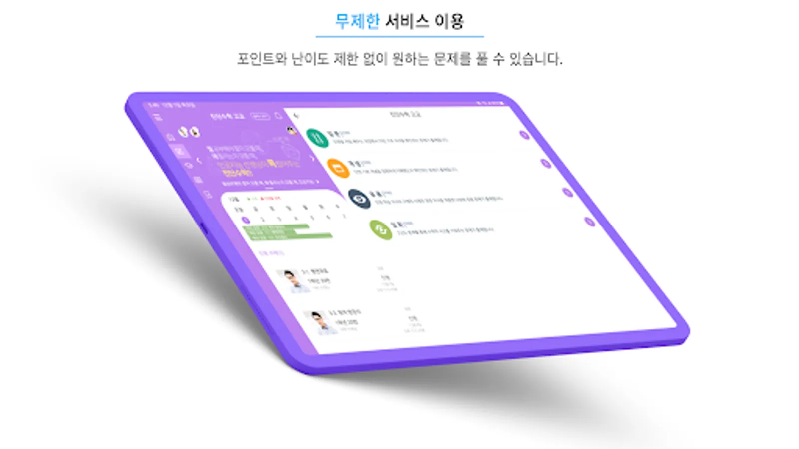 2. 태블릿 구독 회원은 포인트 제한 없이 모든 난이도의 문제를 풀 수 있어요.