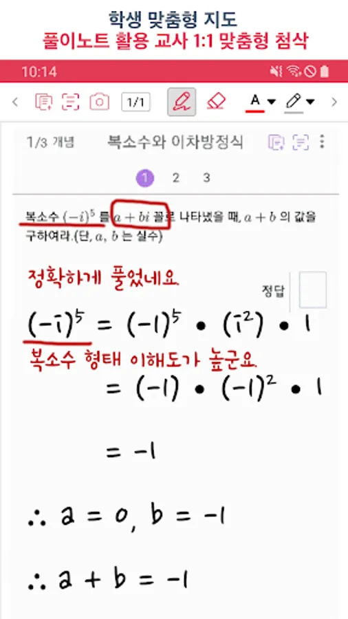 By checking the result of solving tasks analyzed by artificial intelligence, it is possible to provide corrective guidance for all students or students who need attention directly on the app, allowing customized guidance for each student.
