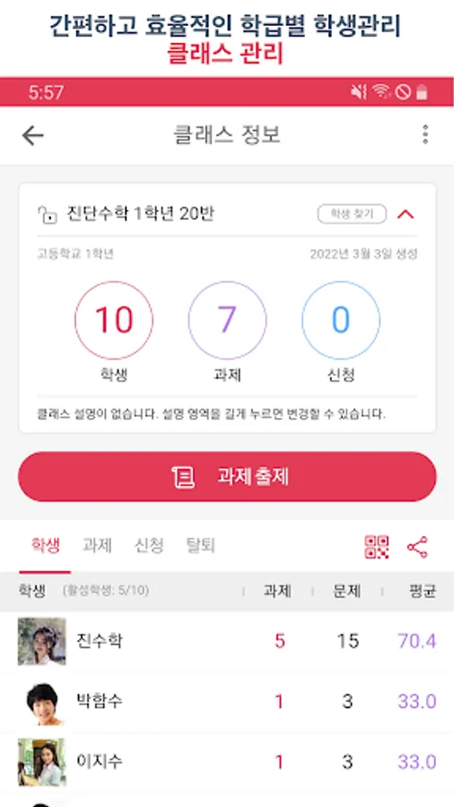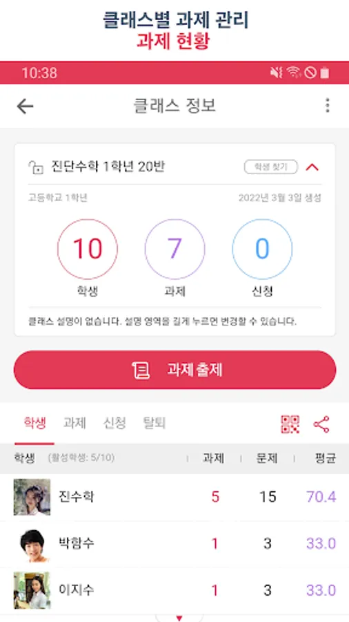 You can open a class to manage students in a class. The class is structured so that you can easily understand the current status of the students.