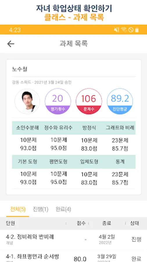 You can grasp and manage your child's diagnosis results by date, assignment schedule, etc. at a glance.