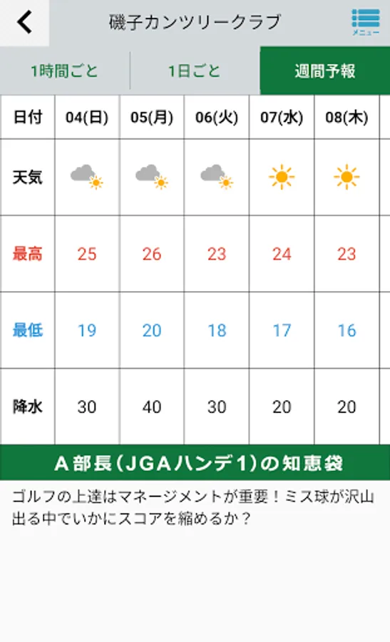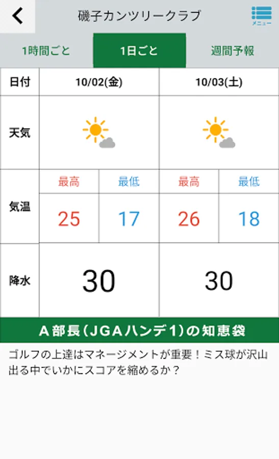 With "National Golf Weather", you can see the amount of precipitation in units of 0.1 mm.