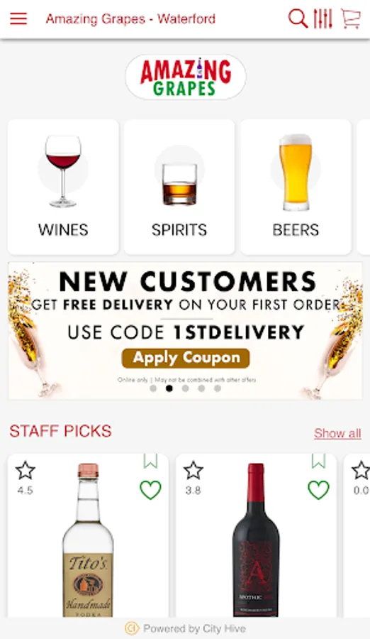 With the App you can browse for the wines & spirits available in the store, and also order a delivery or pickup.